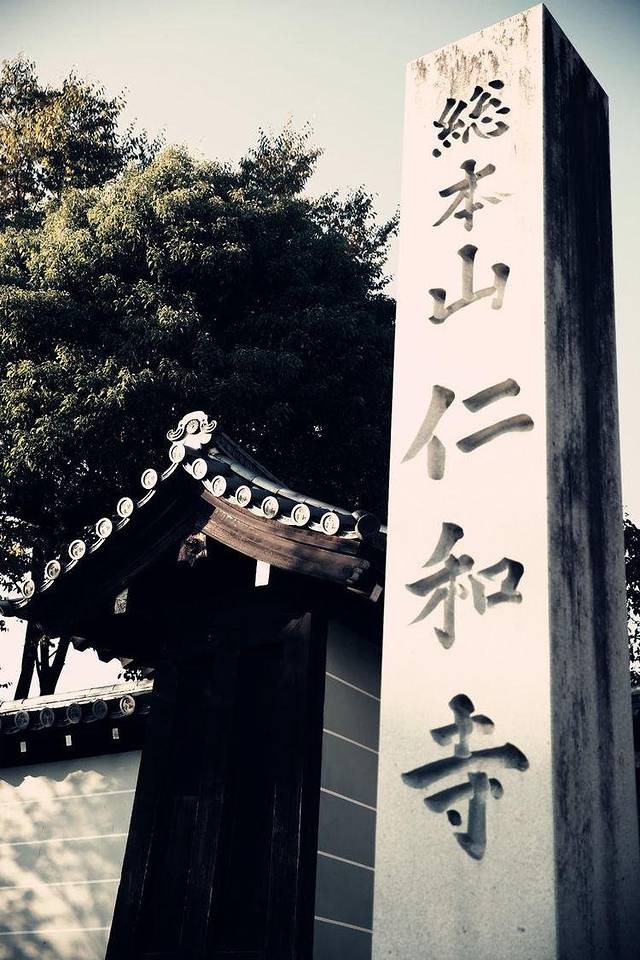 其创建于公元888年,现已被列入世界文化遗产名录。寺内有御室樱200多棵,这些樱花作为京都开花期最晚的樱花而极负盛名,每年4月下旬就是赏花的最好季节。