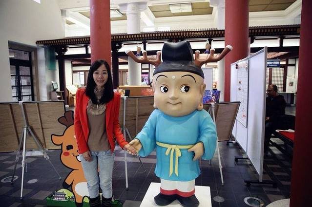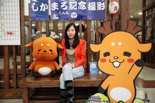 戴着鹿角的娃娃,在奈良鹿是吉祥物。奈良不算大,做JR从大阪到这里很方便。