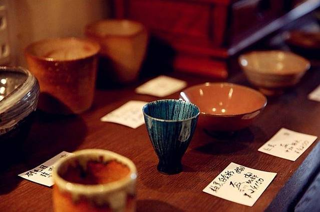 碰巧今天这个展的作者在馆内,一位三十岁左右的年轻女子,很难想像这些精美的作品都出自她手,看中一个杯子买下后邀请她签上了自己的名字:本多亞弥