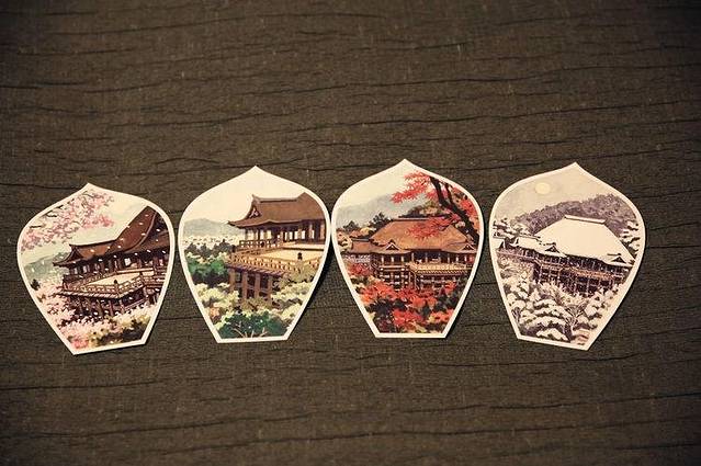 工作室门口放了一套清水寺四季的卡片,售价500日元,这是板画作者与清水寺合作义卖的。