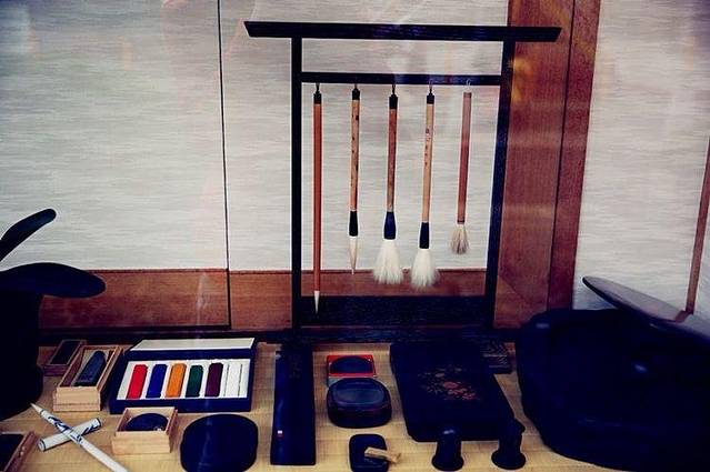 逛街时随处可见卖毛笔和信封的商铺,时至今日他们的邀请函和一些比较正式的书函都必须用毛笔书写。