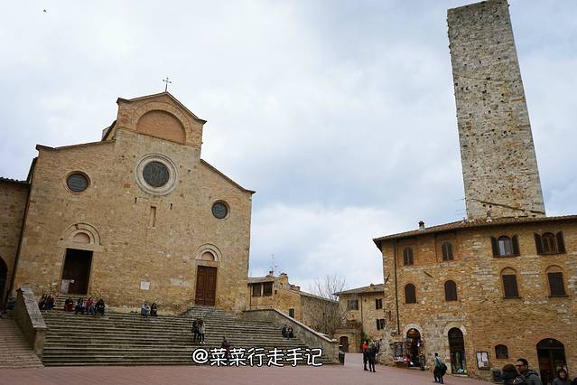 圣吉米尼亚诺有许多教堂,其中主要的2座为Collegiata 教堂(前主教座堂)和Sant'Agostino 教堂,收藏一些意大利文艺复兴主要艺术家的许多作品。主教堂与主教堂广场(Piazza del Duomo)座落在山丘的至高点上,并立着几座尽管外表斑驳但仍巍然矗立的塔楼。可惜,这些我们都没有时间进去瞧瞧,更别提爬个塔楼眺望一下山丘风景了。