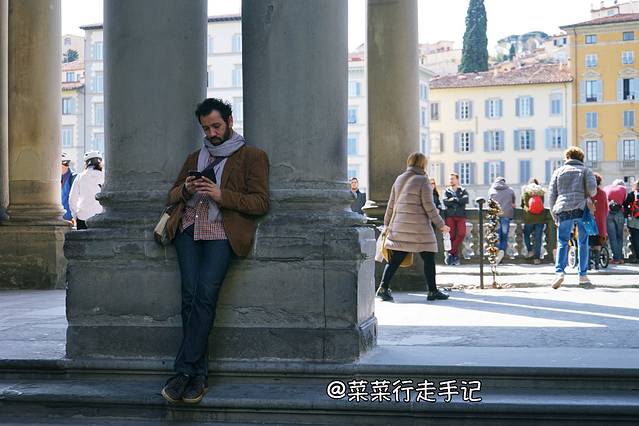 我们绕过领主广场,经过乌菲兹美术馆,跨越半段维奇奥桥,然后,止步于此。我特意留意了书中所写的“瓦萨里长廊”。瓦萨里长廊是雨天的一个方便通道,当时可以让美第奇家族的人避开可能遭遇暗杀的巷道。直至今日,瓦萨里长廊仍然在发挥着安全避难所得作用。