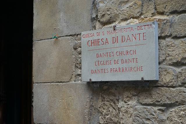 圣玛格丽特教堂就在但丁故居隔壁,但入口很不起眼。这里又称“但丁教堂”,是但丁9岁时初遇贝雅特丽齐•波提纳里的地方。贝雅特丽齐•波提纳里是但丁的初恋情人,但没有好的结果。她本人安葬于此,成为单相思的伤心恋人们光顾的圣地。