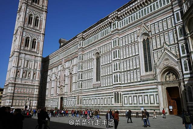 当圣母百花大教堂相隔十年再次出现在我的眼前,熟悉的红白绿相间花纹,就像见到一位老朋友,内心涌起万千思绪。当然,当年我没能拍下教堂全景,如今还是没能得偿所愿,相机依旧不够给力。我用目光细细摩挲着这座非凡建筑的外墙,每一寸的细节,想要记住,再回味十年。