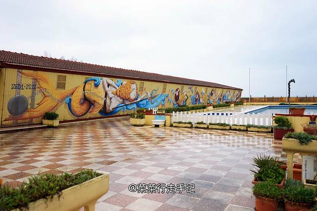 靠海一边有许多公共泳池,大铁门紧锁着,围着栅栏,一副生人勿近的样子;每一个泳池都有自己的名字,其中一家叫“nuova italia”(新意大利),我不禁哑然失笑。不知为什么,我看着它们,脑海里浮现出来的是贾樟柯的电影,很现实主义的风格,可能在夏天里,这些都是很热闹的玩乐场所吧。