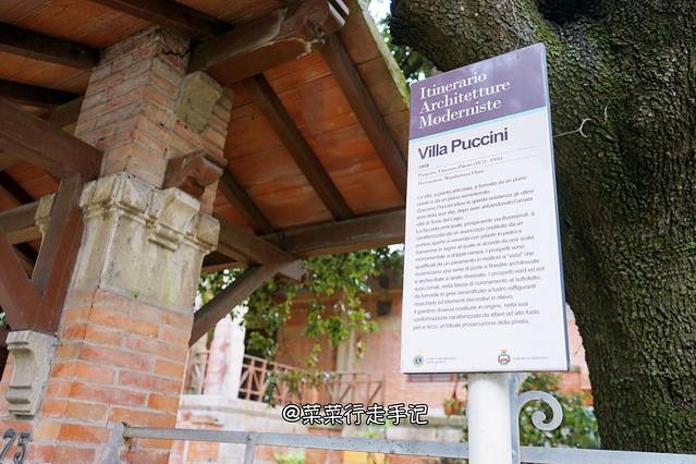 果真,就在酒店的隔条马路,有一片美丽的花园,园中松果落满地,两层楼高的红砖房透出艺术和历史的氛围。不懂意大利语,大意是说这里是意大利著名歌剧作曲家贾科莫·普契尼(Giacomo Puccini)的故居,晚年时生活在此。