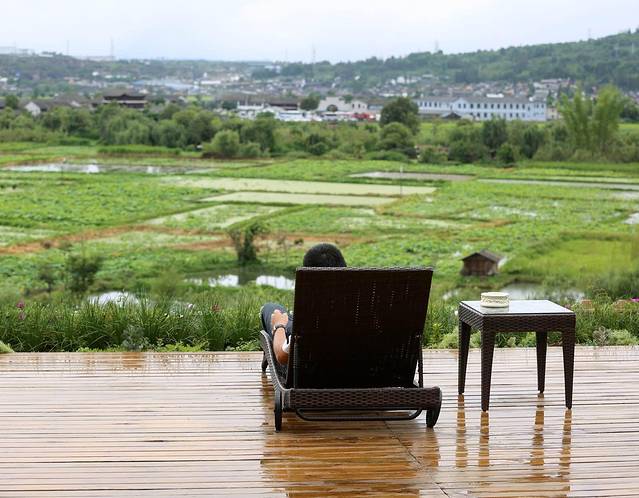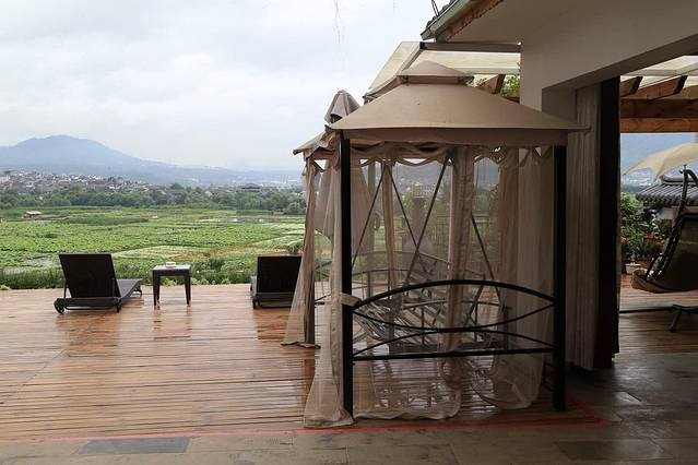 在滴答滴住了两晚之后,我们今天要去湿地对岸,去感受不同的客栈文化。 聆荷渡和聆荷韵这两客栈是紧靠在一起的,老板是个深圳人,这两客栈相当于他投资的一期和二期项目。俯踞山头的客栈,位置极佳。由老板亲自设计,聊起客栈他侃侃而谈,看得出他是非常满意自己的作品。
