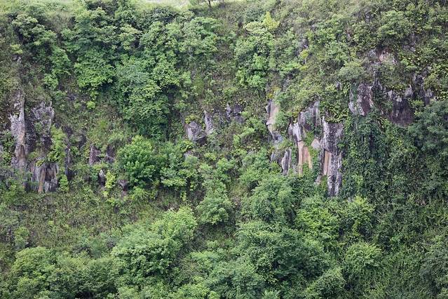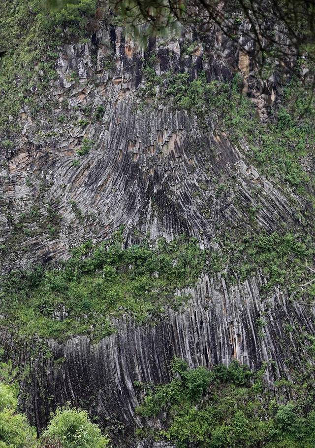 柱状节理是由于火山喷发岩浆冷却而形成,而腾冲的柱状节理群在悬崖峭壁,景色壮观。