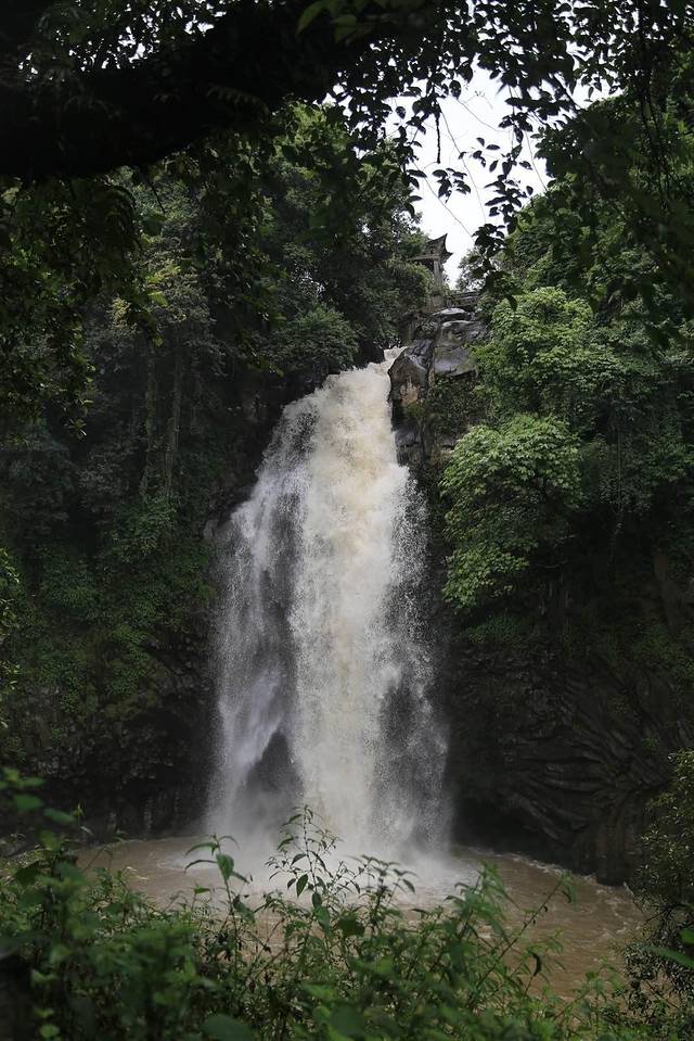 叠水河瀑布很神奇,它在我去过的瀑布里规模并不算太大,诧异的是壮观的叠水河瀑布就在腾冲县城的闹市区。从喧嚣的街头拐进看似不起眼的景区入口,不出两分钟就能听见震耳欲聋的瀑布声,原来这里别有洞天。这时天空又开始下起了雨,雨又跟瀑布激打出一阵阵的水雾混在了一起,任由它们打湿我的头发和衣服。