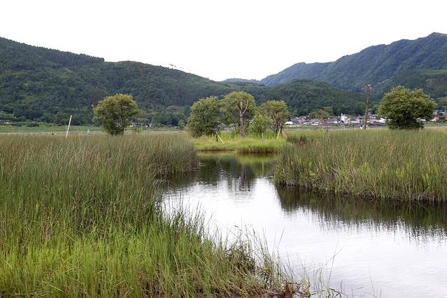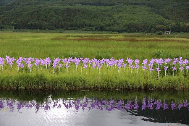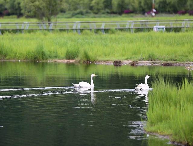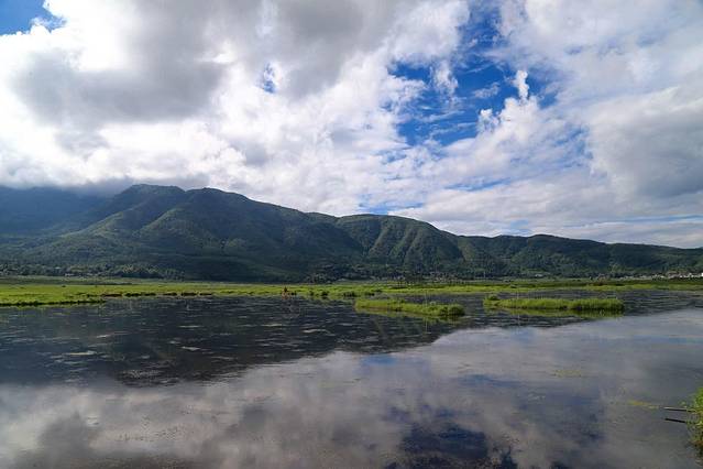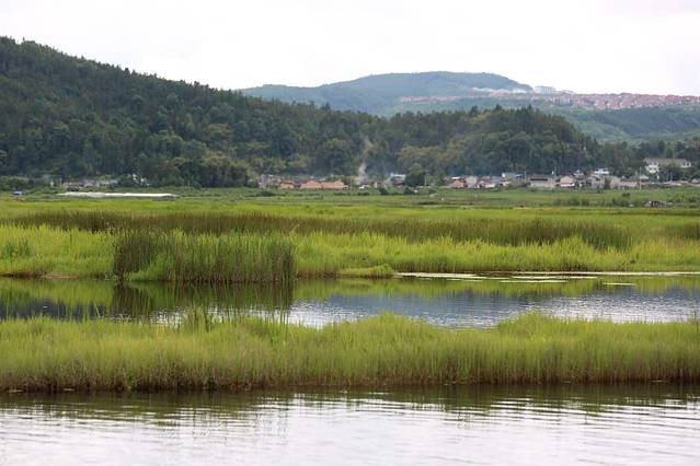 北海湿地四面环山,有着特殊的地理位置,特别之处在于湿地是由火山喷发后形成的堰塞湖,大片漂浮于水面的水草枯萎后又长出新绿,就这样周而复始,盘根错节,相互牵扯地形成了漂浮在水面的陆地,犹如在五彩缤纷的巨型花毯。当地人告诉我每年5月是鸾尾盛开的季节,那时这里是让人惊叹一大片蓝紫景象。我们只是来晚了一个月而已,不见了鸾尾的影子,只留下它花开过结下的果实。不管怎么样,此刻的湿地已经够让我们感到惊艳的了。
