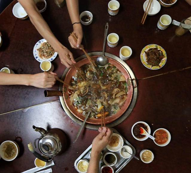 从悦椿出来大家被温汤浸得红光满面,肚子咕咕直叫,原来洗温泉也是耗费体力的。我们来到腾冲本地人喜爱的铜瓢牛肉馆。