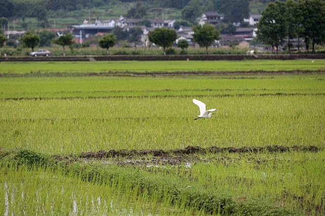 清晨天空依然下着小雨,鸟鸣声和不远处的犬吠声交织在湿漉漉的聆荷渡。一幅不折不扣的田园风光。
