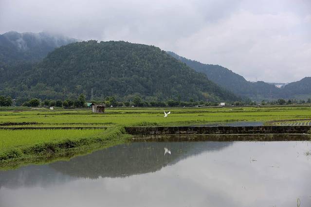生物钟一如既往地让我早早地醒来,欣慰的是发现自己并没有从炕上滚下床来。清晨的和顺下起了小雨,雨点滴打着房顶,淅淅沥沥,不远处的青山被白雾笼罩,风吹过来一阵阵稻田的气味,湿润清新。让我感觉这里并不像身在云南,倒像是在烟雨中的江南。这样的光景,可以沏上一壶茶,啥也不用去想。
