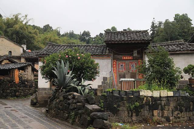这里因靠近腾冲火山,火山喷发后产生的大量岩石,以火山岩作建筑材料,用于古镇的石板路,民宅的院子里也会铺上一大排火山石,因为和顺的气候分成干湿两季,雨季来临时往往雨水很大,用火山石铺的地面,不仅防滑,而且渗水性能极佳,路面基本积不上水。