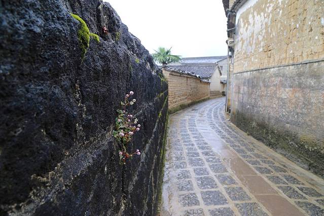 和顺侨乡依山势而斜建,行走在火山石铺就的路上,脚下的摩擦系数感觉颇高,两侧有大量的古宅,墙面斑驳脱落土砖裸露,房子的主人大多身在国外,因并不差钱所以也少有租售。路上的人非常少,很容易给人以时光的错觉,偶尔有当地的青年驾着摩托车从我身旁疾驰而过,又将人硬生生地拉回了现实。