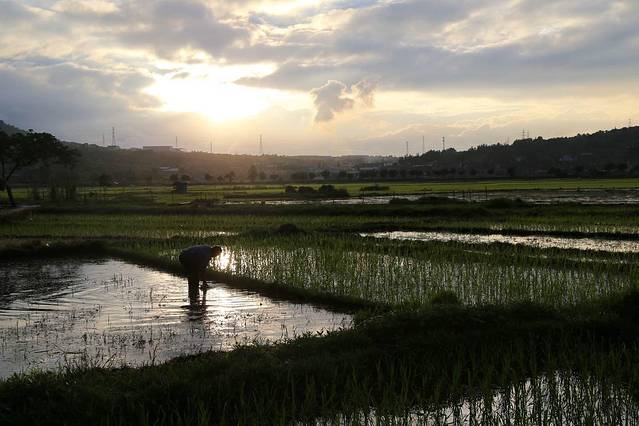 夕阳下田里劳作的和顺人