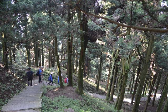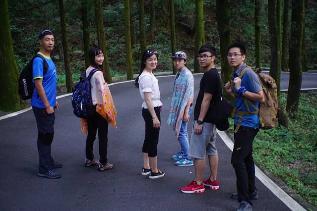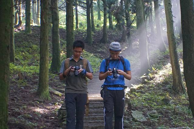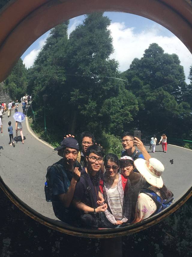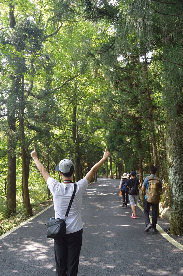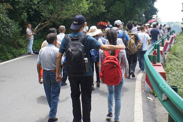 大家休息够继续出发,路确实很漫长。慢慢的,往山上开去的车也多了。空气很不好。最后大家改走登山台阶,反而行程短,空气又好。