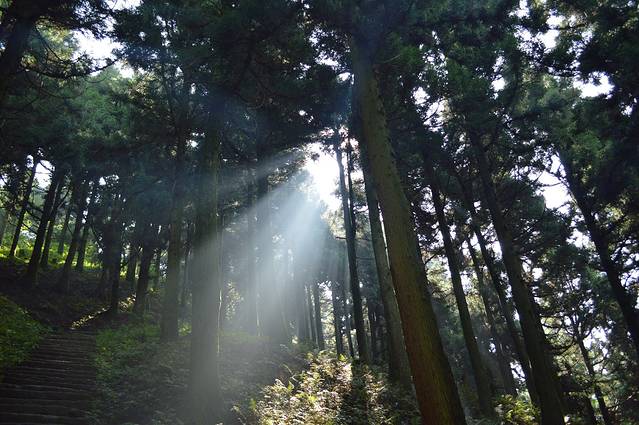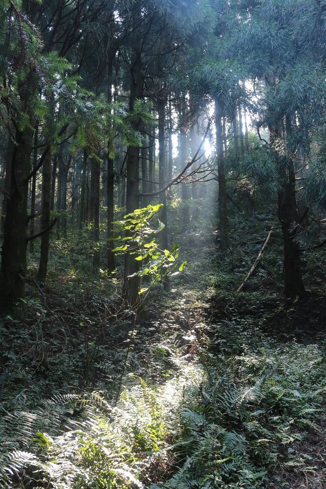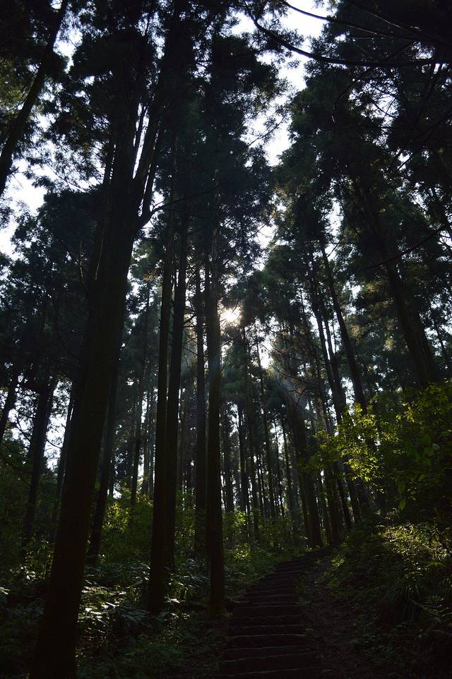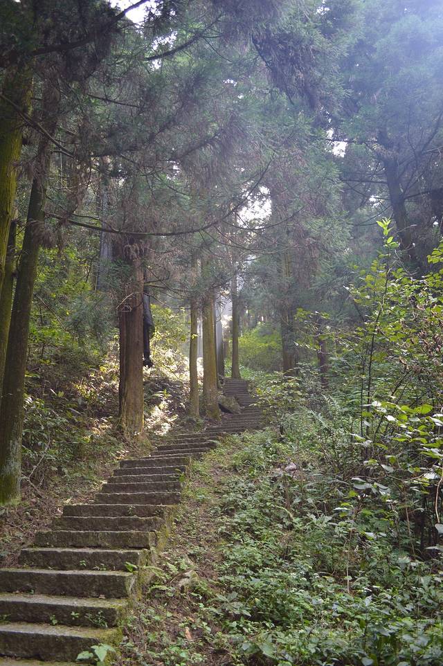 一路上都是石台阶,阳光透过树荫,画面很美~