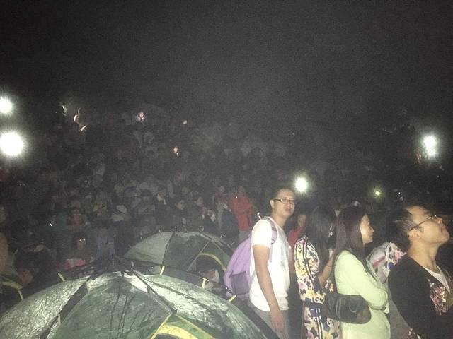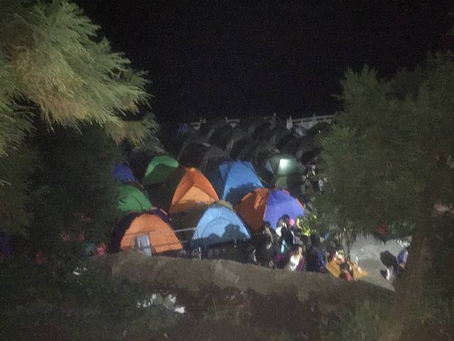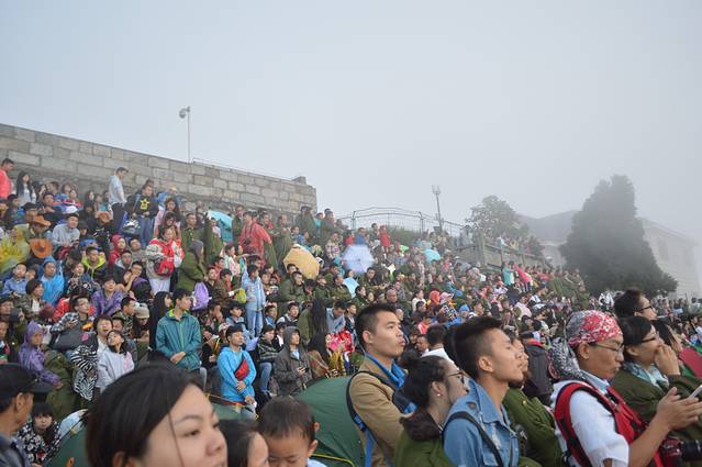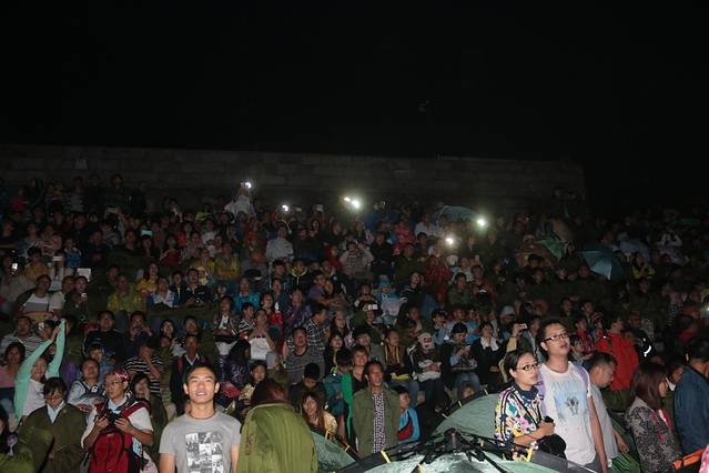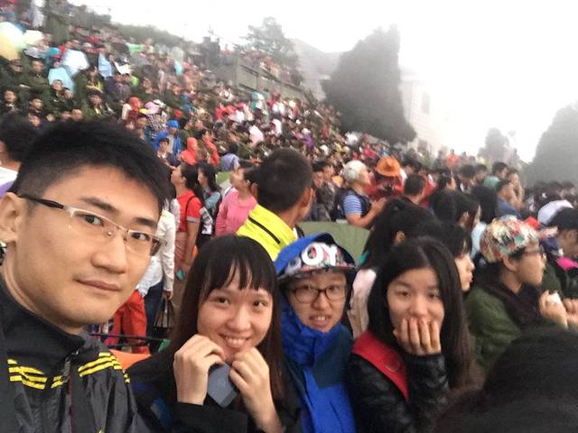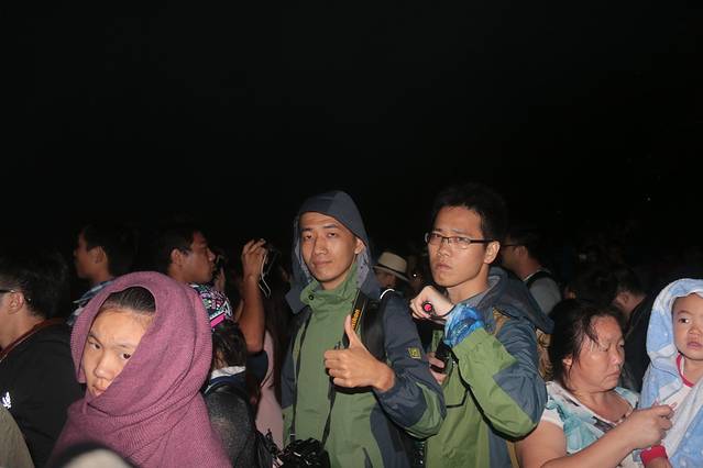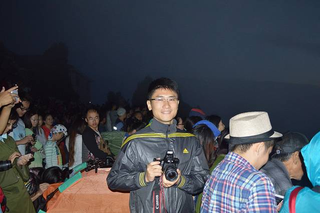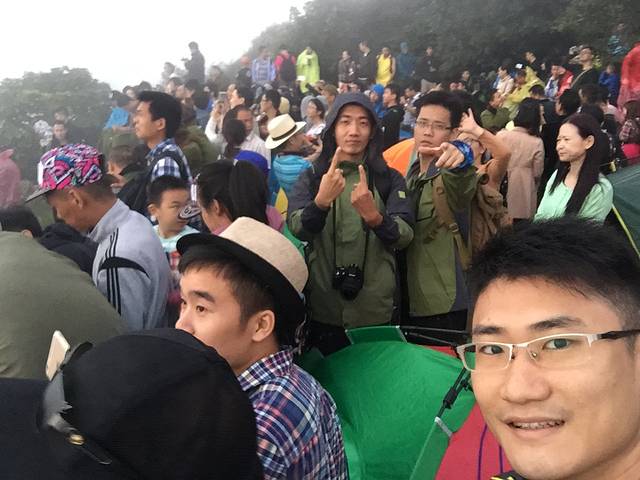 望日台已经人山人海,地上还有很多帐篷占去了很多地方。好的位置早就被其他人霸占了。我们好不容易分成两拨人,站到了比较靠前的位置,开始等待日出。