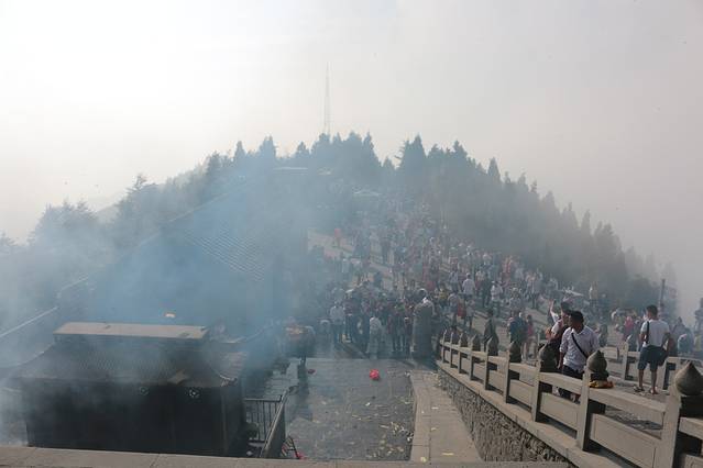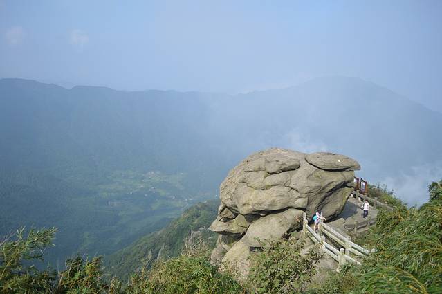 从祝融殿出来,来到旁边的一个平台,远远看到谢姐和熊二很兴奋。原来她们刚才在这里看到了彩虹,她们觉得这个是佛光,今年肯定会嫁出去~~~