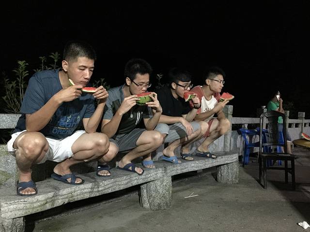 吃饭后,老板拿来了我们下午出发前吩咐他下山帮忙买的西瓜。用山泉水冰镇过的西瓜就是好吃。
