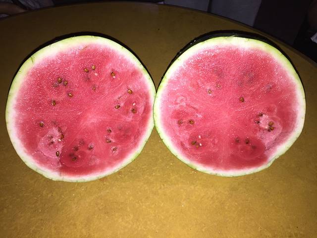 值得一提的是,老板真是好人,把我们那天晚上吃剩下的半个西瓜冰冻好送了下来,并且切好分块。天气这么热,我们这么累,西瓜吃起来特别特别甜~