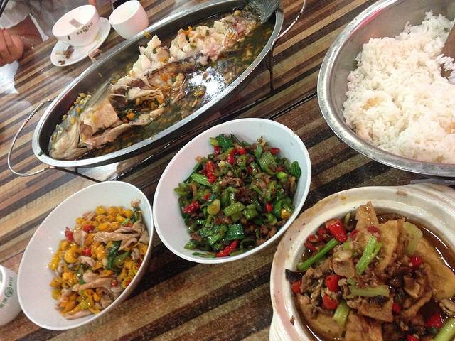 点了7菜1汤的农家菜,我们按照老板的建议,结合实际,修改下午的路线安排,决定去西线。