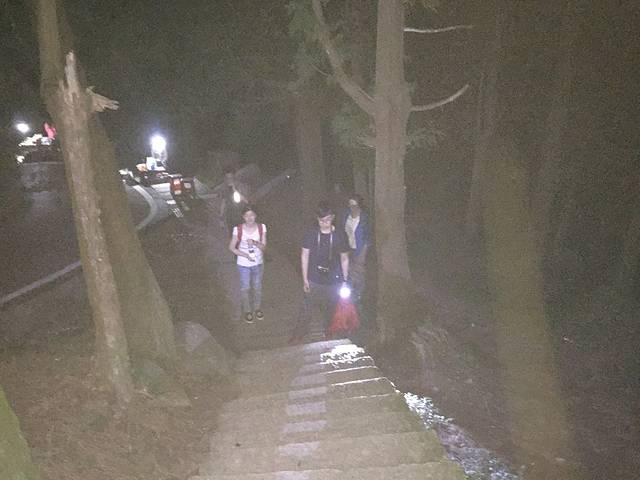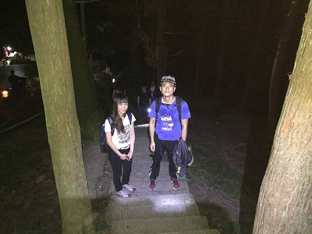 好不容易找到了徒步爬山入口,路上没有多少路灯,一片漆黑,我们不知道路对不对,也就一直往前走;途中遇到其他来夜爬的驴友,看来夜爬很受大家欢迎。