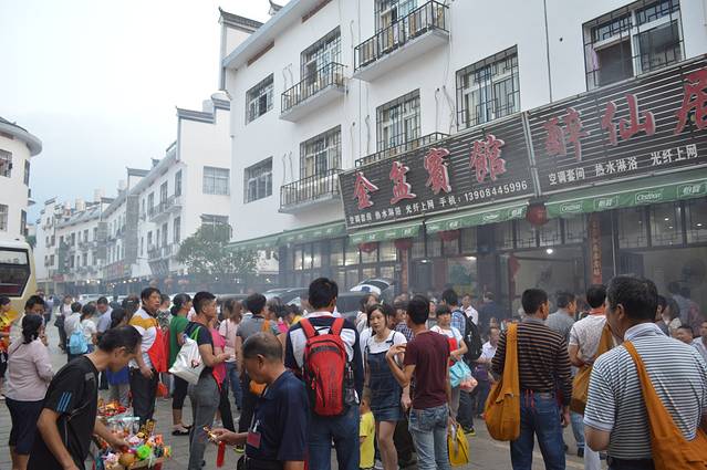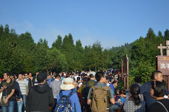 路过游客服务中心,人山人海,都是等着坐车上山的。还好我们走的是徒步登山路线。