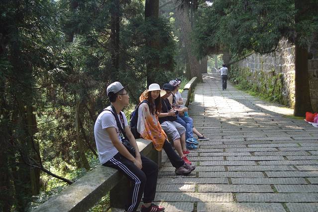 从现在开始,远离了公路,基本上路上就没有什么人了。可以好好欣赏衡山的自然风光了。当然长长的台阶也累坏了大家