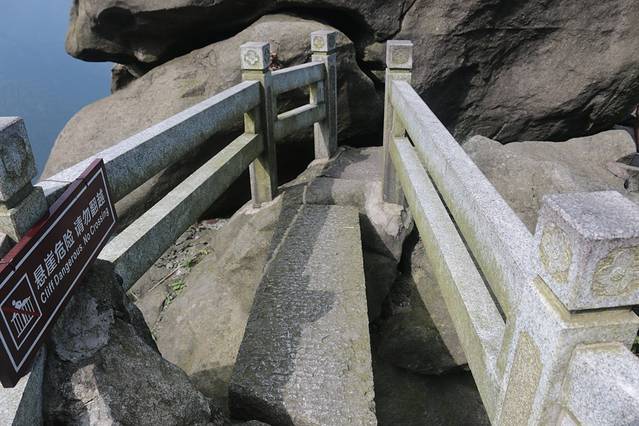 接着是会仙桥了,路牌显示单程1000米,而且一开始是长长的下行台阶。小伙伴们由于体力原因,有点犹豫不前。最后还是缓缓下行。途中遇到返回的游客,对方说“很险峻,很漂亮”,大家才认真开始大步往前走。