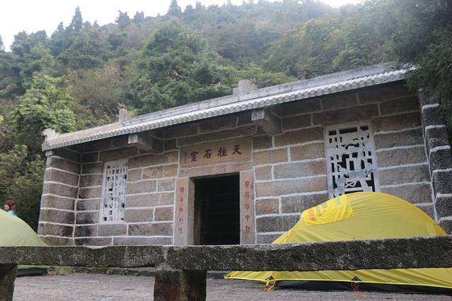 走了大概30分钟,来到了天柱石室。这里有几个驴友搭帐篷准备露营~我们托一个驴友大姐给后面的几个同伴留言,告诉他们我们已经先走了,让他们不要放弃~