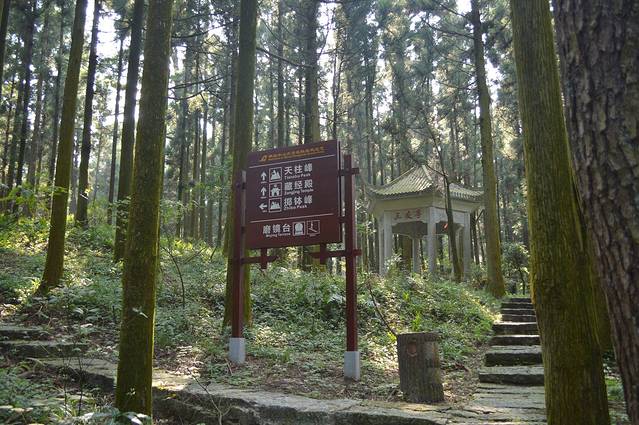 来到磨镜台大石头这里,有一个问题就摆在了我们的眼前。到目前我们已经走了1个半小时,连金刚舍利塔都没有走,更不用说后面的掷钵峰和天柱峰。向工作人员打听,如果去金刚舍利塔,单程还要20分钟。如果去天柱峰,则往回走有长长的台阶可以爬山。