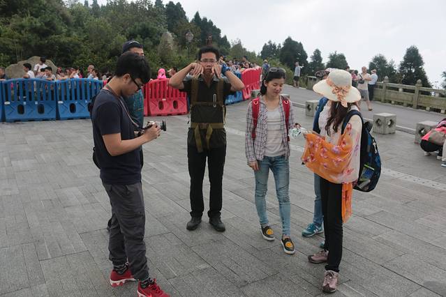 到了望日台的路口,我们等到了徐大,互相诧异后,徐大和小蝶先走。没想到杰少一会也赶到了。所有人终于汇集到一起。到望日台的台阶不宽,都是人。大家慢慢的挪动着。