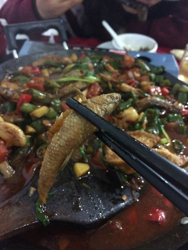 晚上熊姐推荐的一家饭店,点了一斤杂鱼,一个腊肉笋干,一个青菜。黄焖杂鱼新鲜好吃,每一条都处理过,腊肉够味,笋干新鲜,青菜好吃到无语。