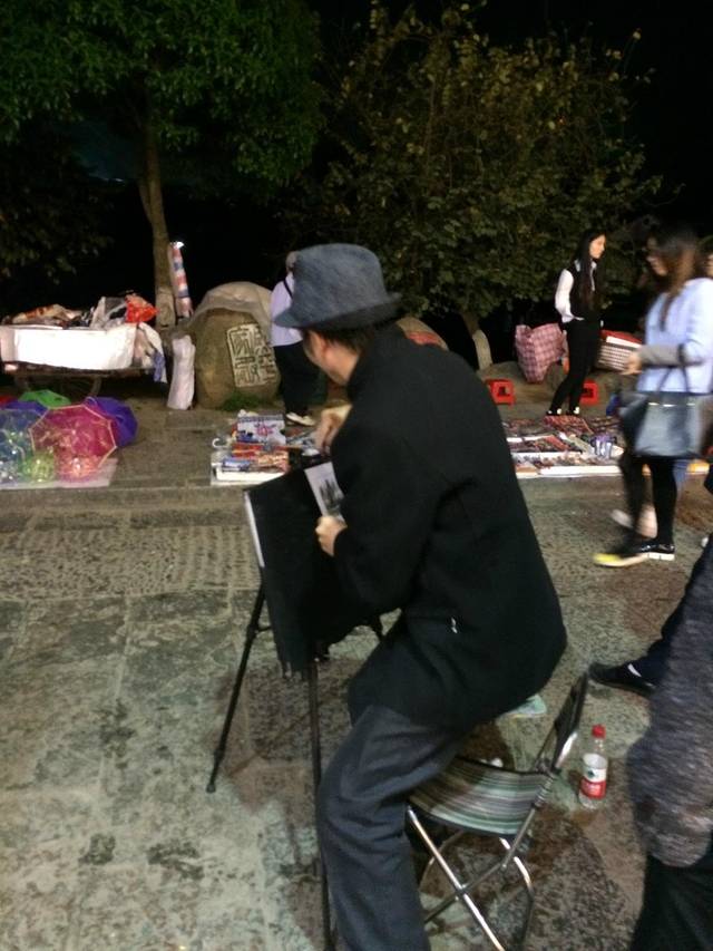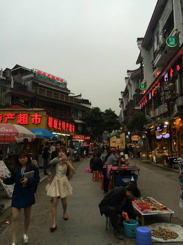 地摊:西街的地摊是最有特色的,很多富有个性的人在西街上摆摊卖东西,各种稀奇古怪的玩意。不过个人建议,无论是店铺还是地摊,东西需要认真对比,然后都可然后都可以砍价。各种东西在不同地方的售价都不一样,大家可以先走一遍对比下。比方说据说是桂林特产的一种香水,十块钱4瓶3瓶都有,能不能砍到5瓶看你自己的本事了。还有一般买10块钱人不会和你啰嗦的,除非你买的相对比较多,各位看官自重哟。当然我说的香水是那种最差的,好的价格完全不一样。还有就是少数民族的包和服饰,尽管砍价,别太狠,给人留条活路就成。
