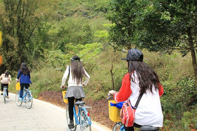 上岸不远就是旧县,很多租单车的,价格都不贵,单人20,双人三十。下船的地方还有很多吃饭的的地儿,没去过就没推荐。不过陈小哥倒是推荐了一下,你懂得,不多说了。