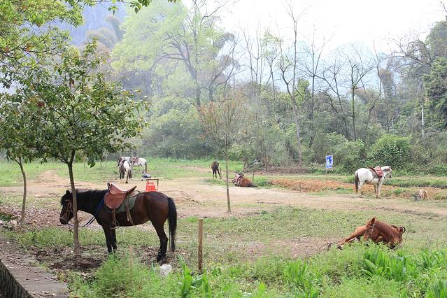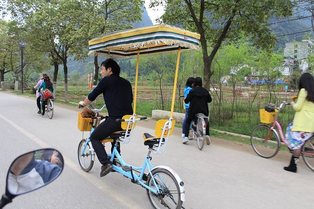 到了阳朔后我们直接去客栈。阳朔的交通确实不怎么方便,主要由摩托车,三轮车、出租车和电瓶车额。前俩者是主力军,出租车很少,而且不打表,一般都是15块钱左右可以砍价。不过出租车上午8点还是9点下午5点之前是不准进县城的,因为人真心多,周末路根本走不通,别说车了。摩托车和三轮车都可以砍价,10块左右都可以接受,不受时间限制。电瓶车就是阳朔的公交车,几路什么的真抱歉我忘了,大家可以去搜下,公交车需要在站台等,大约20分钟一班,不过这时间也是不确定的,我们有次等了三十多分钟才有车。