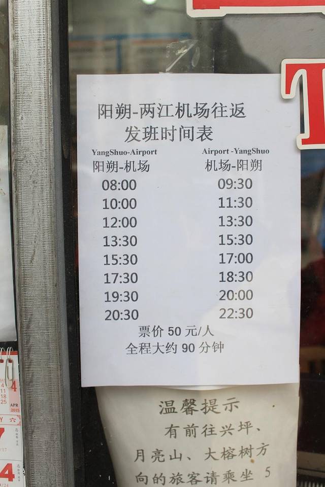 由于第二天6.50的飞机,阳朔发往桂林的机场大巴1.30 3.30 ,时长一般1.5H,按座位坐,严格准时出发,说几点就几点,不等人,这边大家需要注意了。下图附上时刻表。