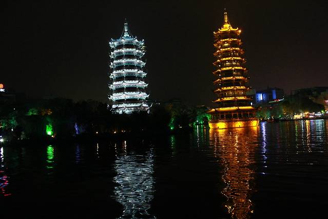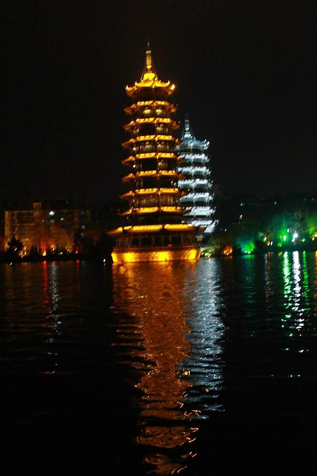 晚饭之后公交到市中心,11路或者99,然后沿着木龙湖向西,一直到桃花江吧应该,把漓江,桃花江,榕湖,杉湖,桂湖,木龙湖走了一遭。一共花了约2小时吧,下面提几个小建议:
