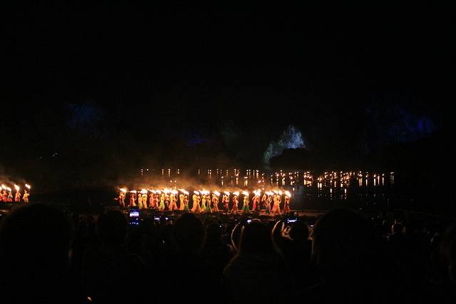 《印象刘三姐》这是关于广西少数民族爱情的故事,对对歌,叙叙事,结结婚,然后就没什么了。我们买的票是180元一个人,最后分在了B区。这边需要说的是,刘三姐的作为顺序是ABC和贵宾,一次从前往后,贵宾是最好的,A是最差的,由于这个票自己也不能确定位置,听天由命吧。