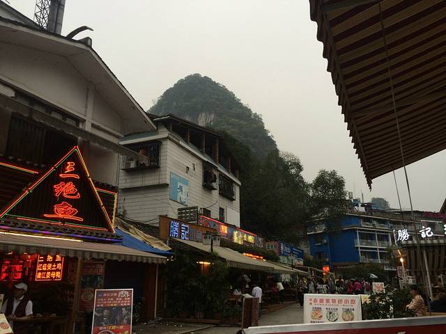 下午在酒店休息了会,晚上出门吃饭去。阳朔街上最多的就是啤酒鱼饭店的了,什么什么姐的多的一塌糊涂,各种搞不清,所以,大家需要拿出手机,打开团购,找上面评价最好的那家基本没错。当然是靠的最近的,说实话,低档的馆子真心没多少差别。我们是在阳朔街上闲逛一圈后,用美团团的大师傅的毛骨鱼套餐,毛骨鱼实际上比剑骨鱼差一点,但是说实话不常吃也差不多。