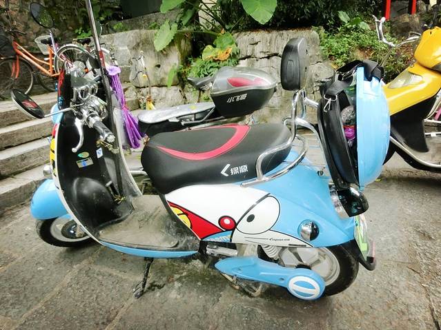 第二天游十里画廊月亮山 关于租车是按次数来的租一天也是那么多租一小时也是那么多,第一天租了自行车20块,然后看着别人骑电动一个劲的羡慕所以第二天就去租了多啦a梦。喊60的价然后50租的车所以要干啥最好先砍砍价。