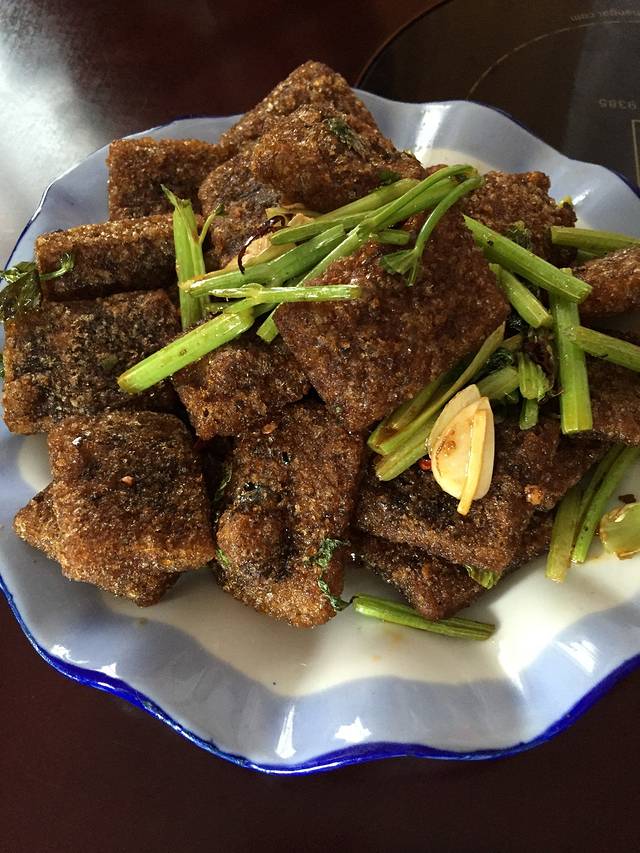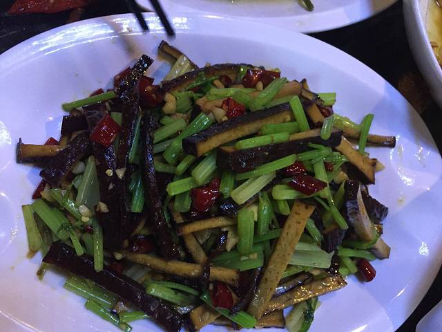 芹菜炒香干,本地香干有一种特殊的薰香味。
