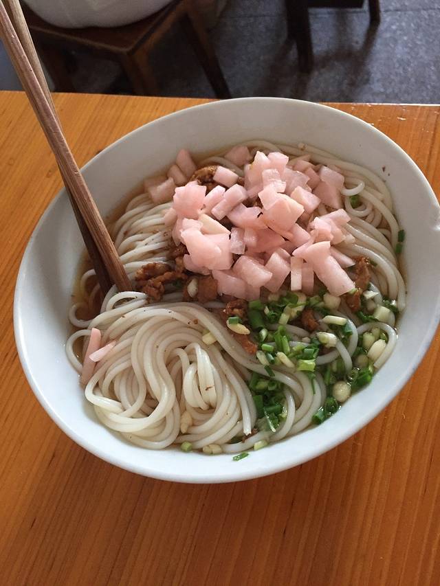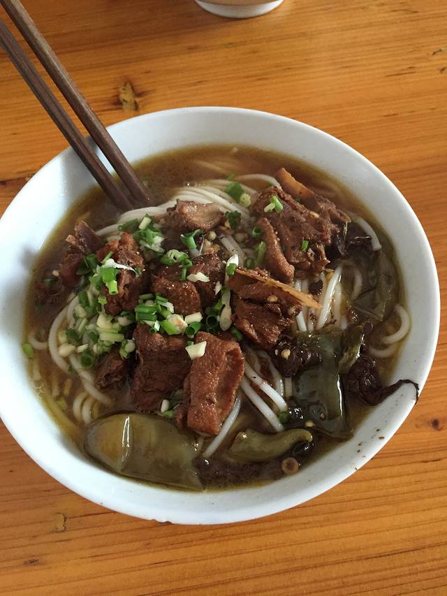 在城内我们没吃正餐,晚上每人一碗米豆腐。城内人的生活真是与现代生活毫不搭介,都是慢悠悠的,不管客人怎么着急就是我行我素地做事,我们点的两个餐都是等了半个小时才吃上。
