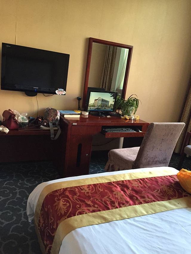 宾馆房间不算大,但有电脑,每个房间都有WIFI无线路由器。
