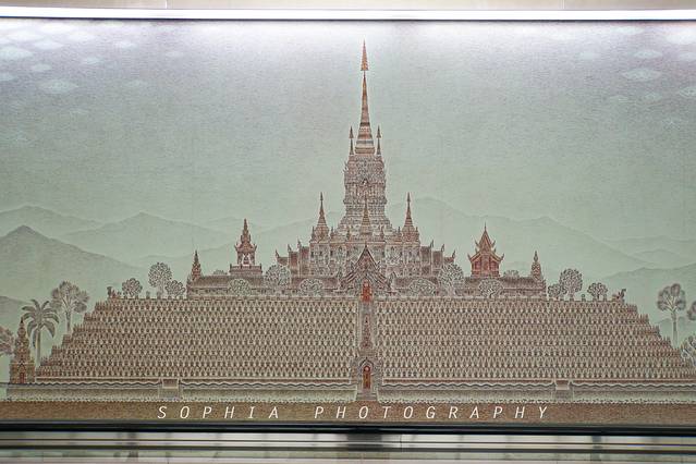 曼谷机场,一下飞机便感受到浓浓的佛国特色。各种装饰、壁画,都内含各种佛教故事,仿佛步入寺庙间!