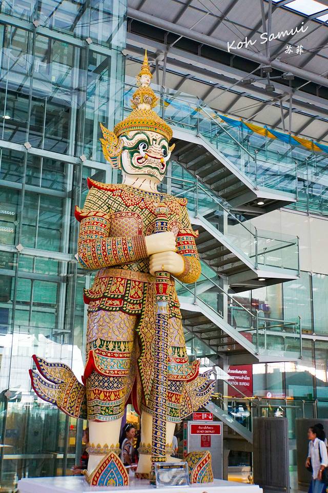 这个在出发大厅里有两座约三层楼高的护法雕像,不知道是泰国佛教里的哪一位神仙,保护各位的旅途平安顺利。