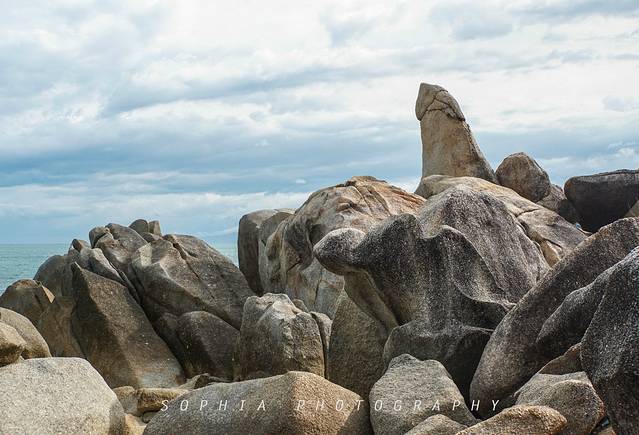 而在拉迈海滩旁,有一个鬼斧神工的所在,当地人称“阿公阿婆石”(Grandpa and Grandma Stone)。